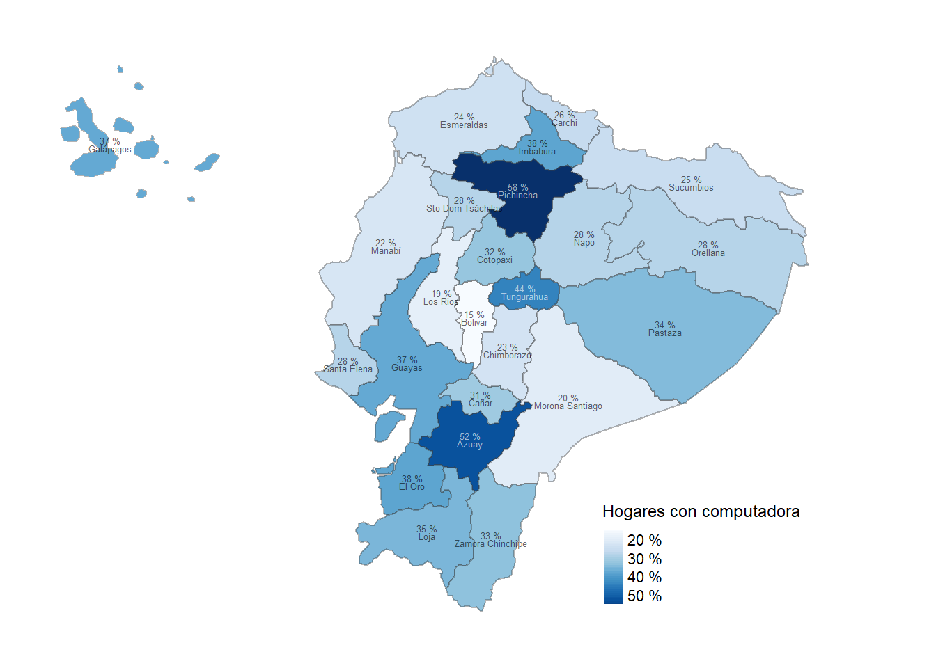 A continuación presento el porcentaje de hogares que tienen al menos una computador (por provincia):